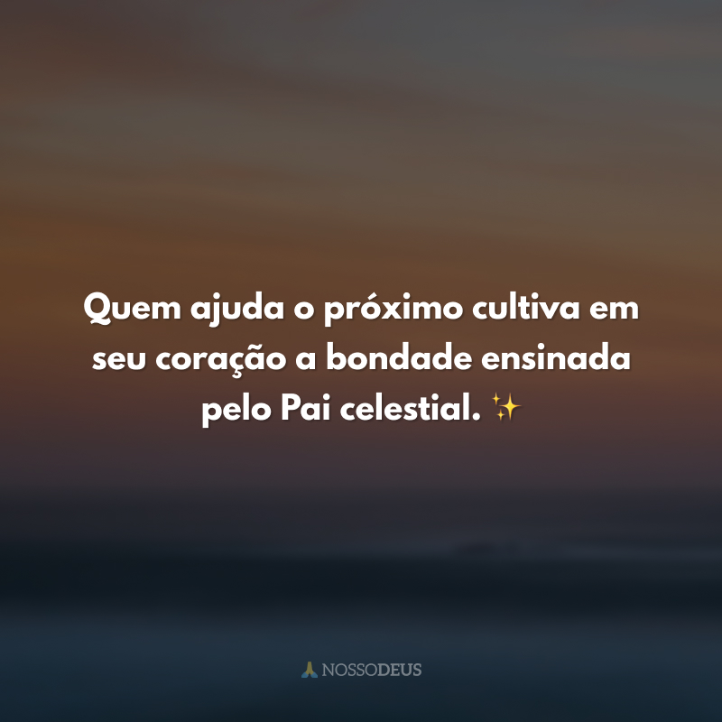 Quem ajuda o próximo cultiva em seu coração a bondade ensinada pelo Pai celestial. ✨