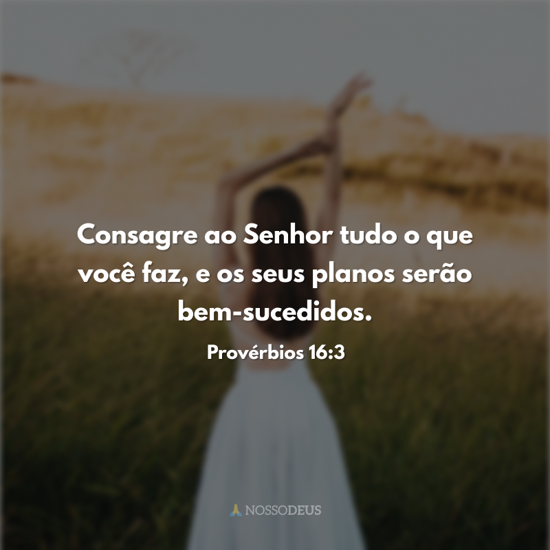 Consagre ao Senhor tudo o que você faz, e os seus planos serão bem-sucedidos.
