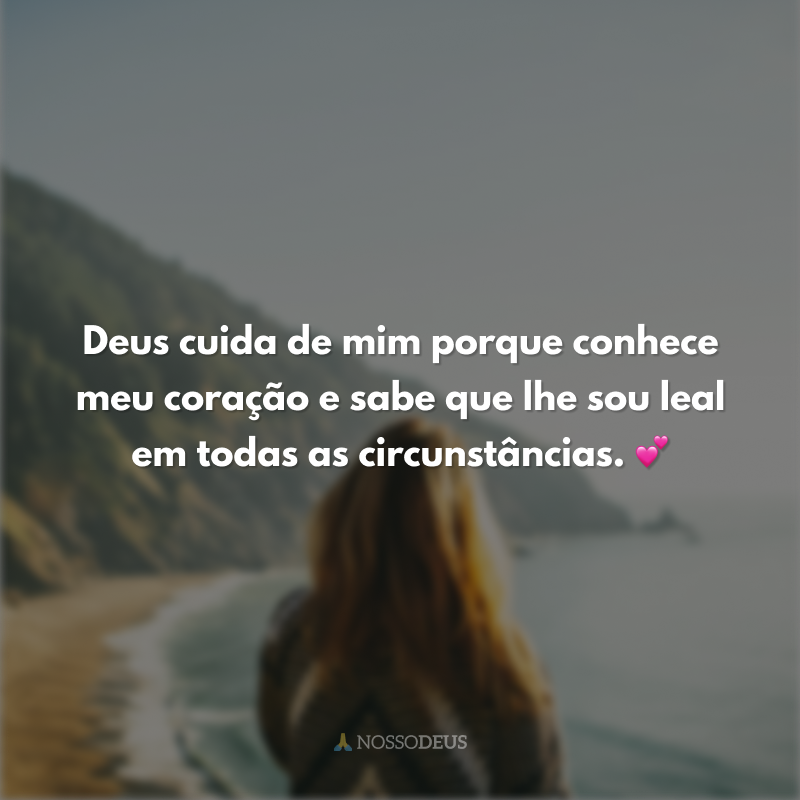 Deus cuida de mim porque conhece meu coração e sabe que lhe sou leal em todas as circunstâncias. 💕