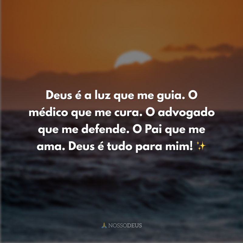 Deus é a luz que me guia. O médico que me cura. O advogado que me defende. O Pai que me ama. Deus é tudo para mim! ✨