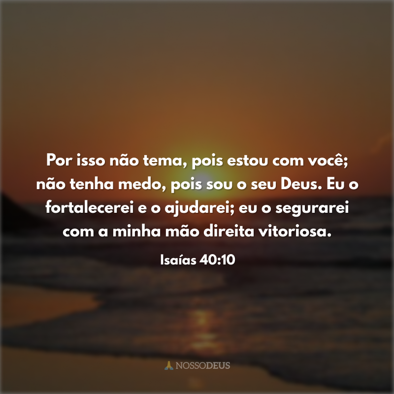 Por isso não tema, pois estou com você; não tenha medo, pois sou o seu Deus. Eu o fortalecerei e o ajudarei; eu o segurarei com a minha mão direita vitoriosa.