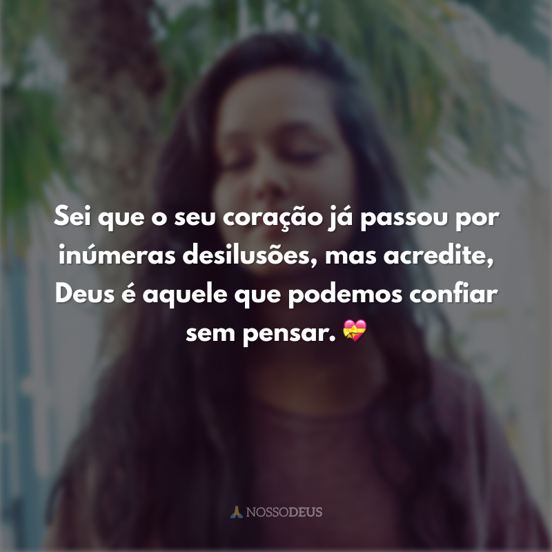 Sei que o seu coração já passou por inúmeras desilusões, mas acredite, Deus é aquele que podemos confiar sem pensar. 💝