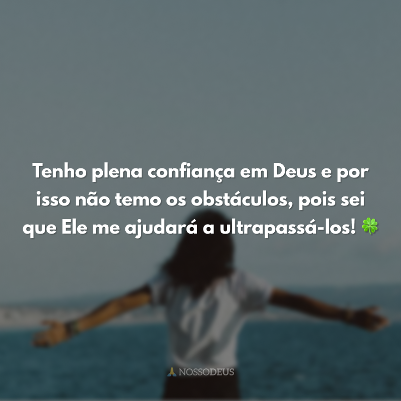 Tenho plena confiança em Deus e por isso não temo os obstáculos, pois sei que Ele me ajudará a ultrapassá-los! 🍀