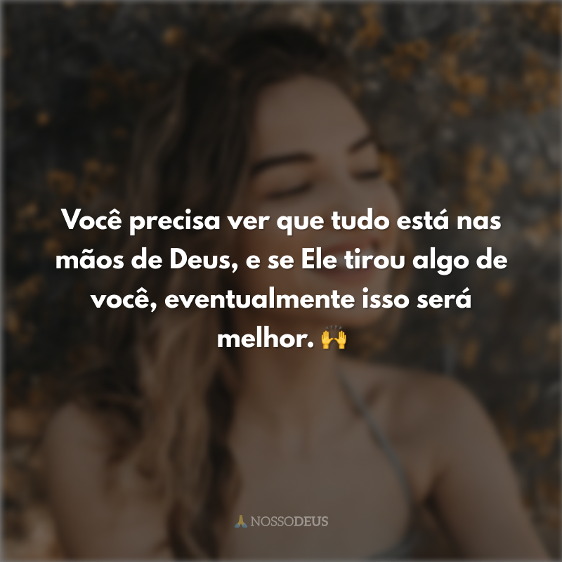 Você precisa ver que tudo está nas mãos de Deus, e se Ele tirou algo de você, eventualmente isso será melhor. 🙌
