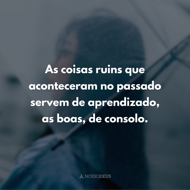 As coisas ruins que aconteceram no passado servem de aprendizado, as boas, de consolo.