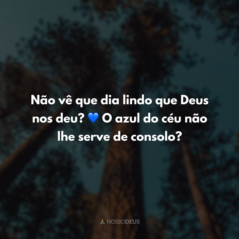 Não vê que dia lindo que Deus nos deu? 💙 O azul do céu não lhe serve de consolo?
