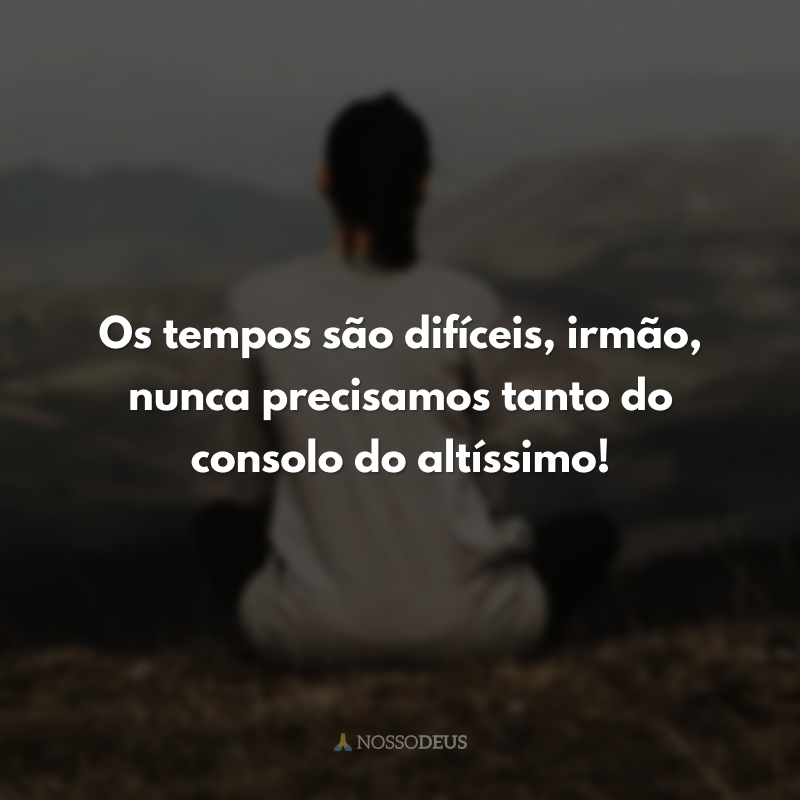 Os tempos são difíceis, irmão, nunca precisamos tanto do consolo do altíssimo!