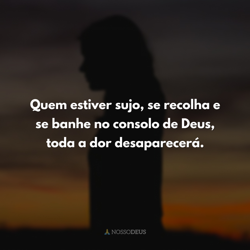 Quem estiver sujo, se recolha e se banhe no consolo de Deus, toda a dor desaparecerá.