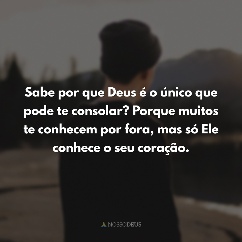 Sabe por que Deus é o único que pode te consolar? Porque muitos te conhecem por fora, mas só Ele conhece o seu coração.