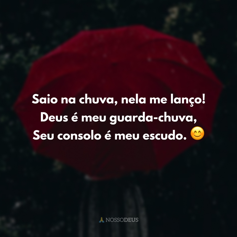 Saio na chuva, nela me lanço! Deus é meu guarda-chuva, Seu consolo é meu escudo. 😊