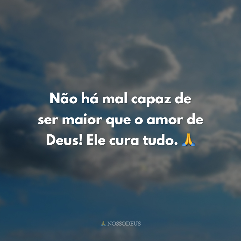 Não há mal capaz de ser maior que o amor de Deus! Ele cura tudo. 🙏