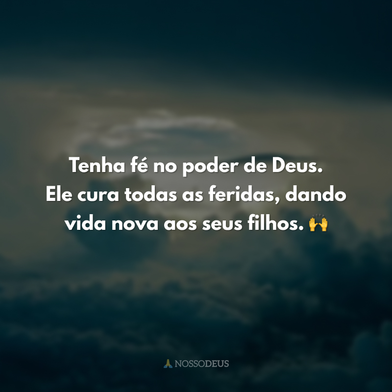 Tenha fé no poder de Deus. Ele cura todas as feridas, dando vida nova aos seus filhos. 🙌