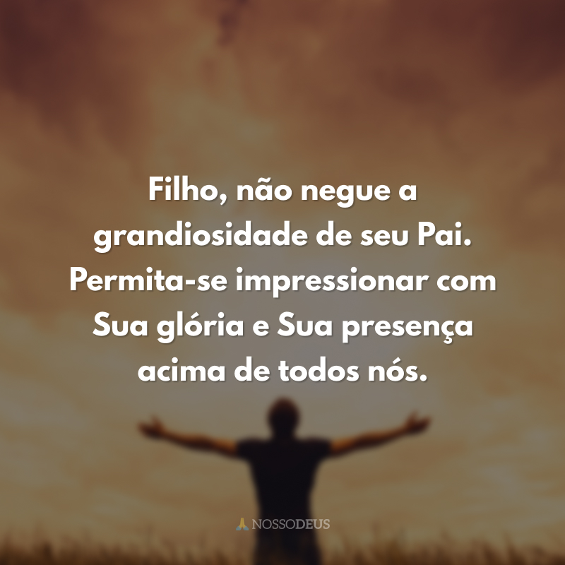 Filho, não negue a grandiosidade de seu Pai. Permita-se impressionar com Sua glória e Sua presença acima de todos nós.