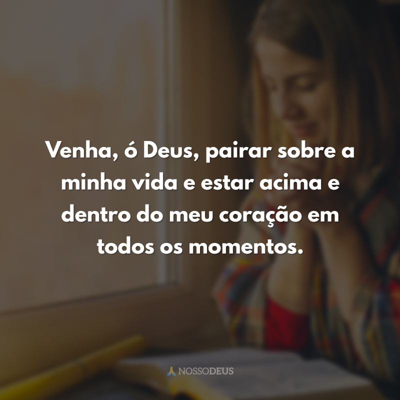 Venha, ó Deus, pairar sobre a minha vida e estar acima e dentro do meu coração em todos os momentos.
