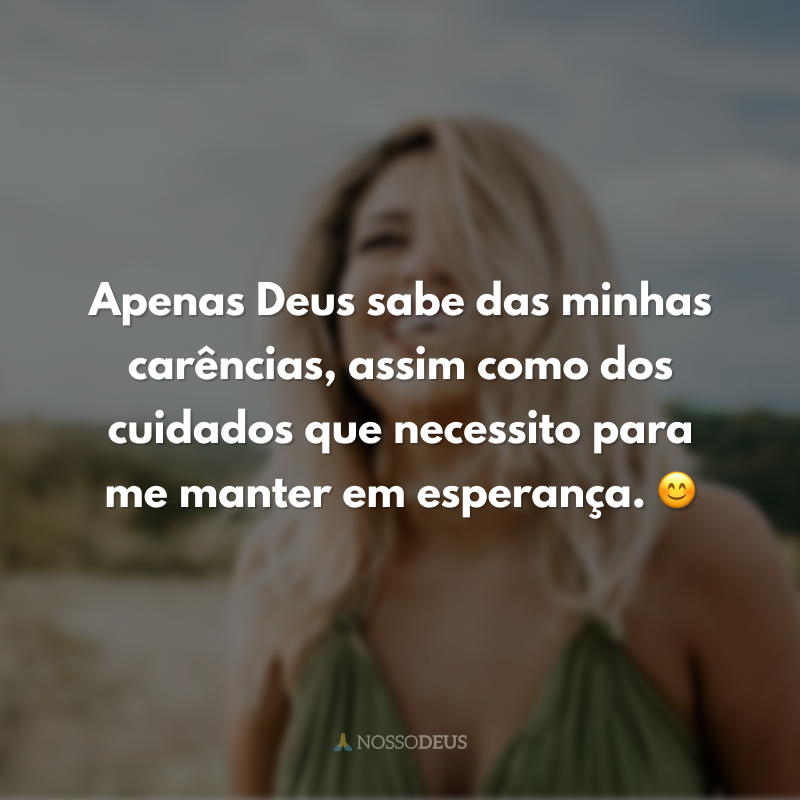 Apenas Deus sabe das minhas carências, assim como dos cuidados que necessito para me manter em esperança. 😊