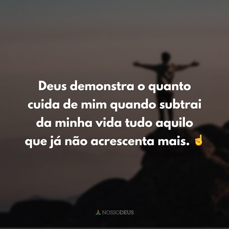 Deus demonstra o quanto cuida de mim quando subtrai da minha vida tudo aquilo que já não acrescenta mais. ☝