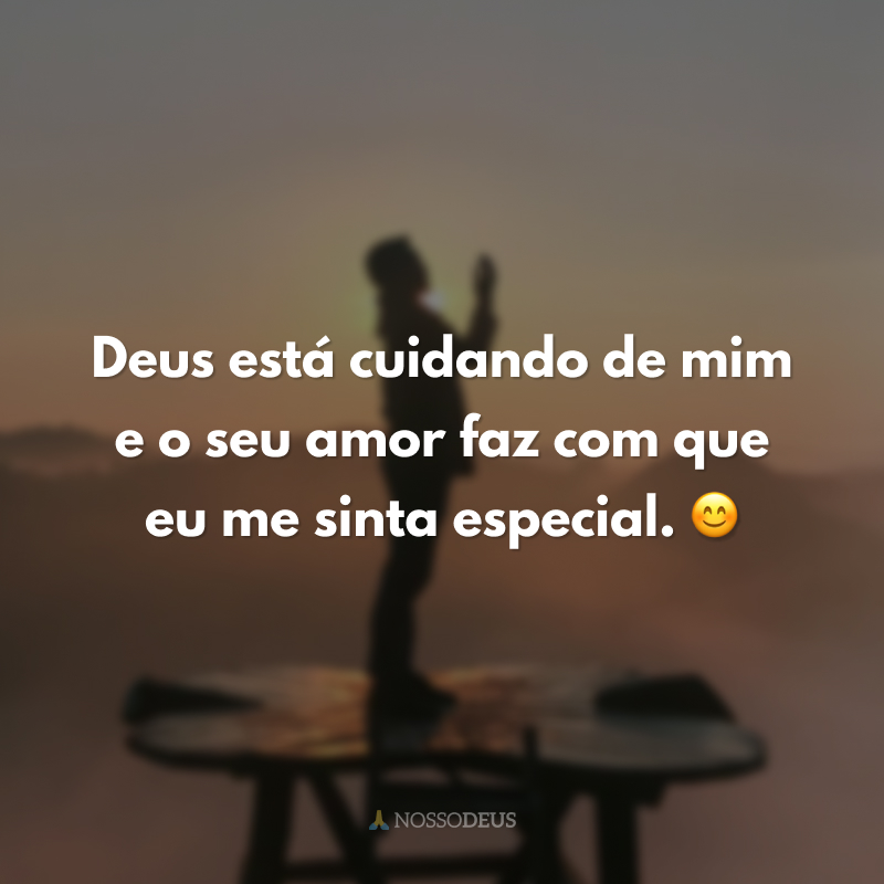 Deus está cuidando de mim e o seu amor faz com que eu me sinta especial. 😊