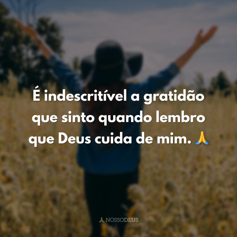 É indescritível a gratidão que sinto quando lembro que Deus cuida de mim. 🙏