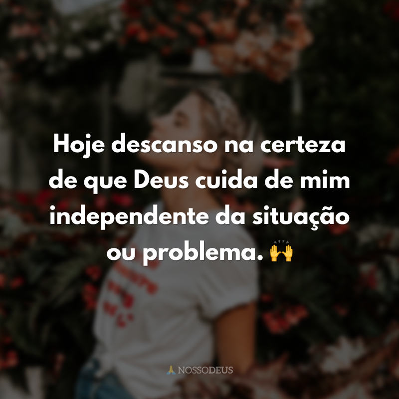 Hoje descanso na certeza de que Deus cuida de mim independente da situação ou problema. 🙌