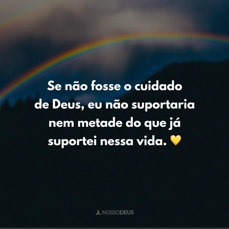 Se não fosse o cuidado de Deus, eu não suportaria nem metade do que já suportei nessa vida. 💛