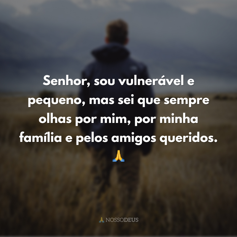 Senhor, sou vulnerável e pequeno, mas sei que sempre olhas por mim, por minha família e pelos amigos queridos. 🙏