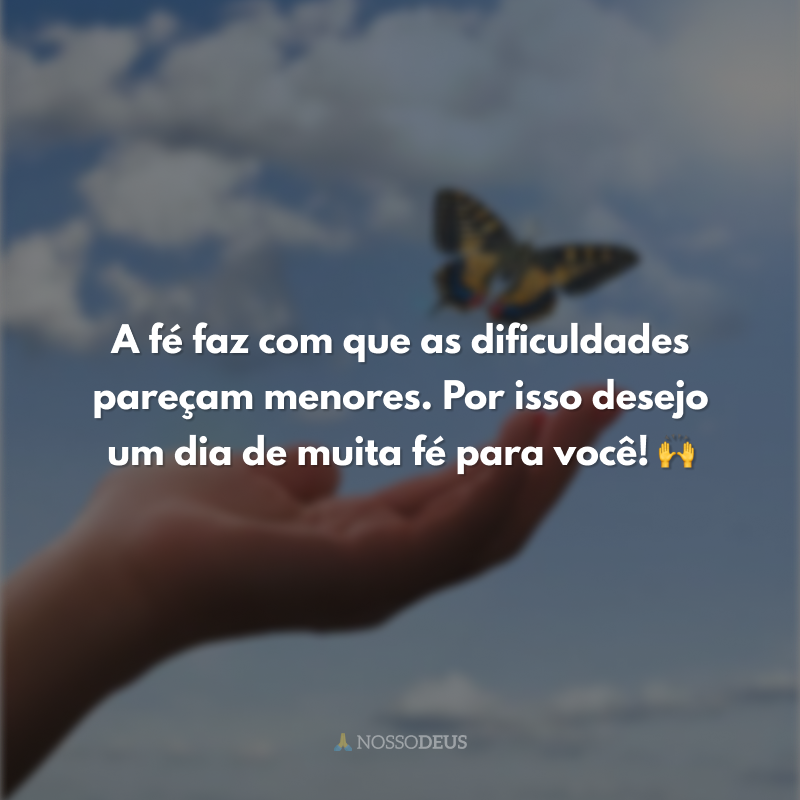 A fé faz com que as dificuldades pareçam menores. Por isso desejo um dia de muita fé para você! 🙌