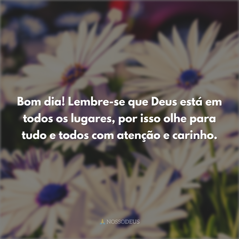 Bom dia! Lembre-se que Deus está em todos os lugares, por isso olhe para tudo e todos com atenção e carinho.