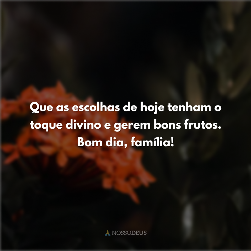 Que as escolhas de hoje tenham o toque divino e gerem bons frutos. Bom dia, família!