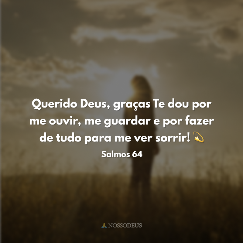 Querido Deus, graças Te dou por me ouvir, me guardar e por fazer de tudo para me ver sorrir! 💫