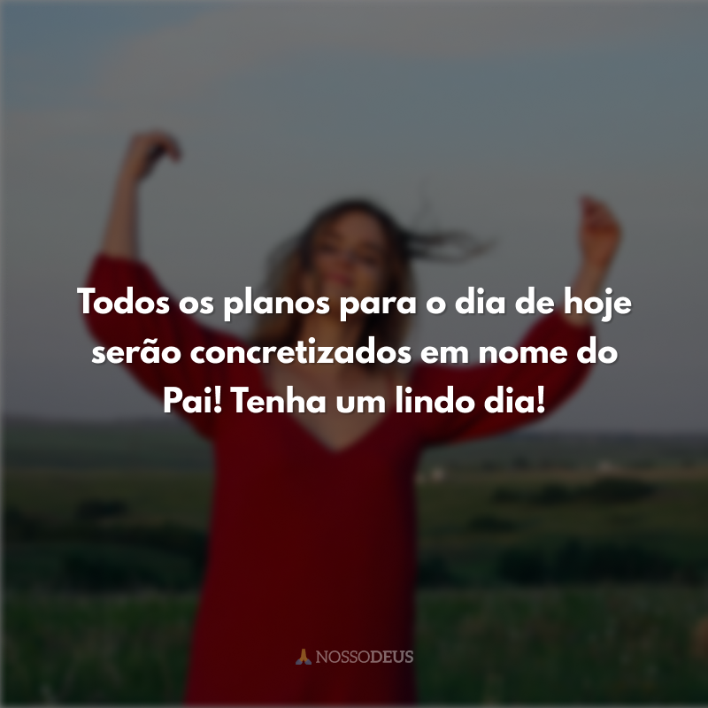Todos os planos para o dia de hoje serão concretizados em nome do Pai! Tenha um lindo dia!