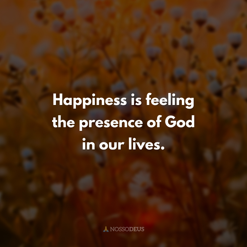 Happiness is feeling the presence of God in our lives. (Felicidade é sentir a presença de Deus em nossa vida.)
