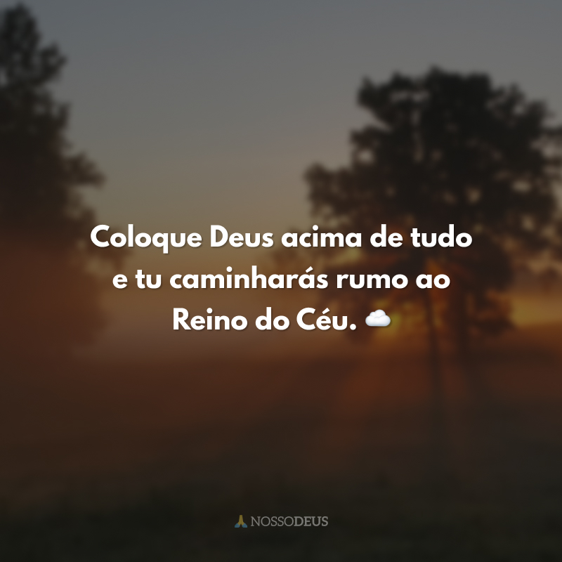 Coloque Deus acima de tudo e tu caminharás rumo ao Reino do Céu. ☁