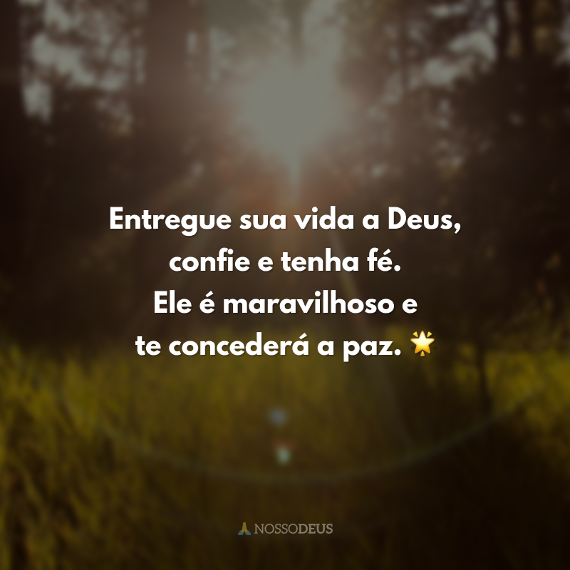 Entregue sua vida a Deus, confie e tenha fé. Ele é maravilhoso e te concederá a paz. 🌟