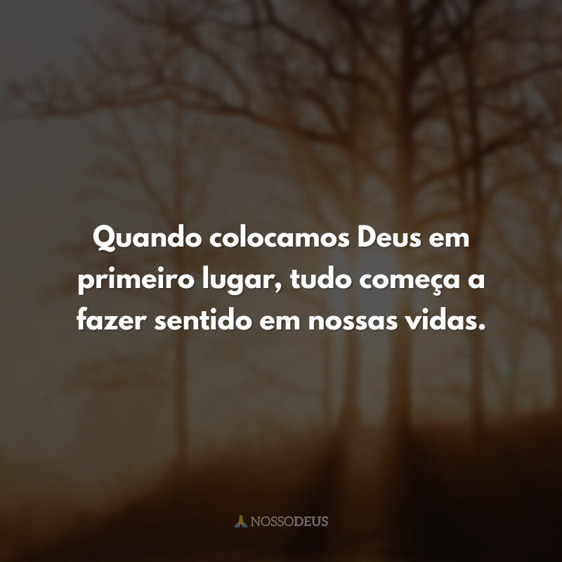 Quando colocamos Deus em primeiro lugar, tudo começa a fazer sentido em nossas vidas.