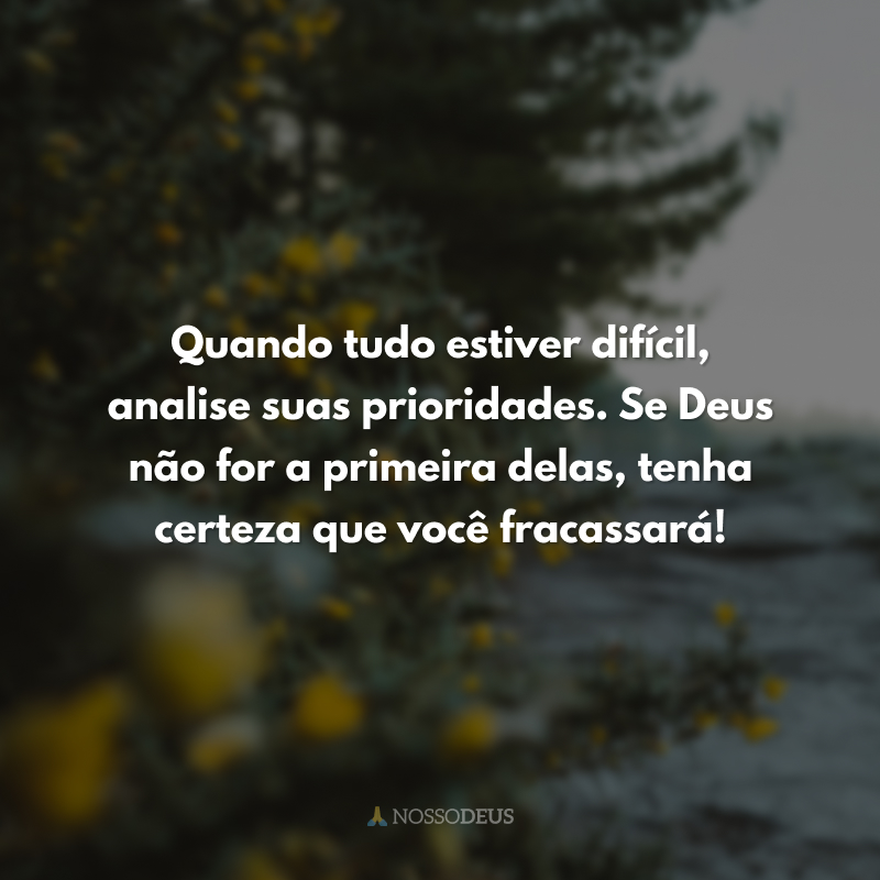Quando tudo estiver difícil, analise suas prioridades. Se Deus não for a primeira delas, tenha certeza que você fracassará!