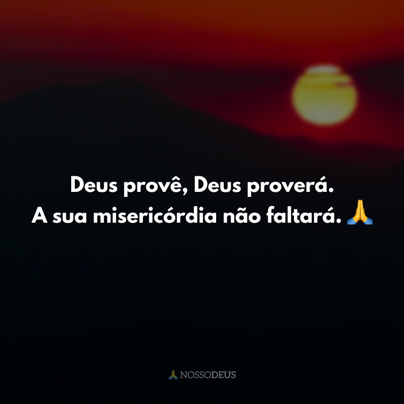 Deus provê, Deus proverá. A sua misericórdia não faltará. 🙏