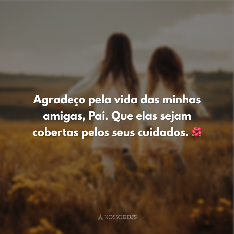 Agradeço pela vida das minhas amigas, Pai. Que elas sejam cobertas pelos seus cuidados. 🌺