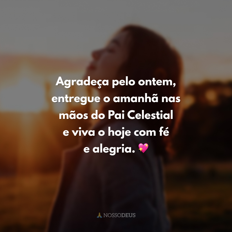 Agradeça pelo ontem, entregue o amanhã nas mãos do Pai Celestial e viva o hoje com fé e alegria. 💖