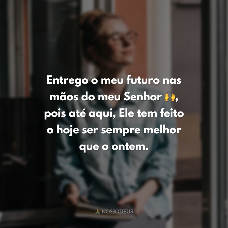 Entrego o meu futuro nas mãos do meu Senhor 🙌, pois até aqui, Ele tem feito o hoje ser sempre melhor que o ontem.