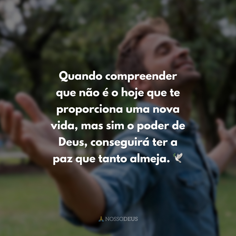 Quando compreender que não é o hoje que te proporciona uma nova vida, mas sim o poder de Deus, conseguirá ter a paz que tanto almeja. 🕊