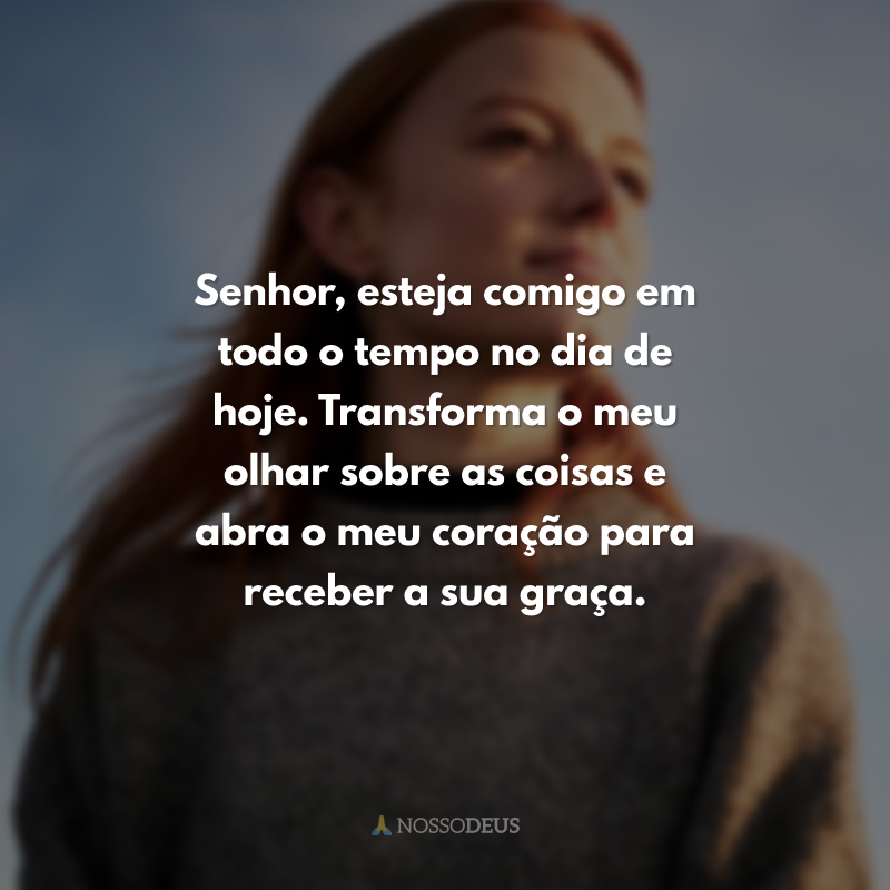Senhor, esteja comigo em todo o tempo no dia de hoje. Transforma o meu olhar sobre as coisas e abra o meu coração para receber a sua graça.