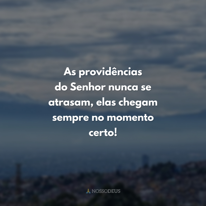 As providências do Senhor nunca se atrasam, elas chegam sempre no momento certo!