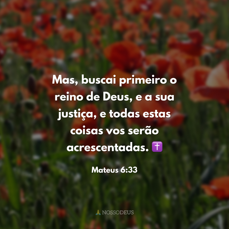 Mas, buscai primeiro o reino de Deus, e a sua justiça, e todas estas coisas vos serão acrescentadas. ✝️