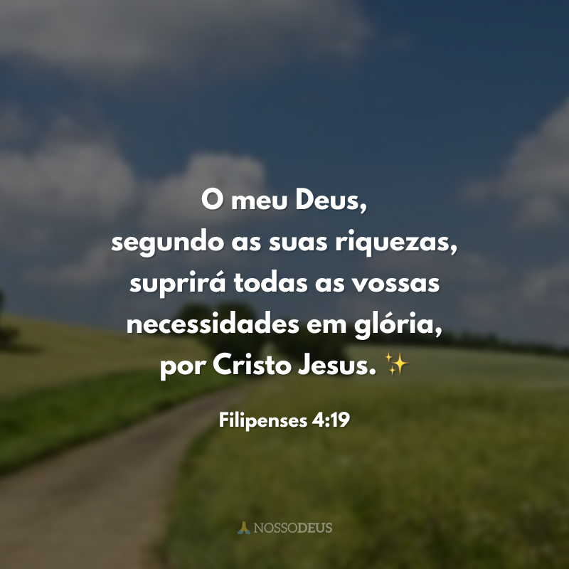 O meu Deus, segundo as suas riquezas, suprirá todas as vossas necessidades em glória, por Cristo Jesus. ✨