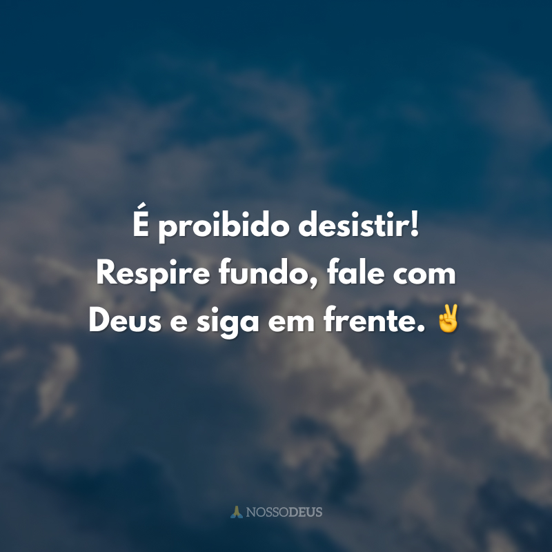 É proibido desistir! Respire fundo, fale com Deus e siga em frente. ✌