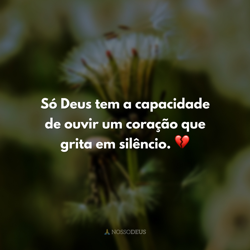 Só Deus tem a capacidade de ouvir um coração que grita em silêncio. 💔