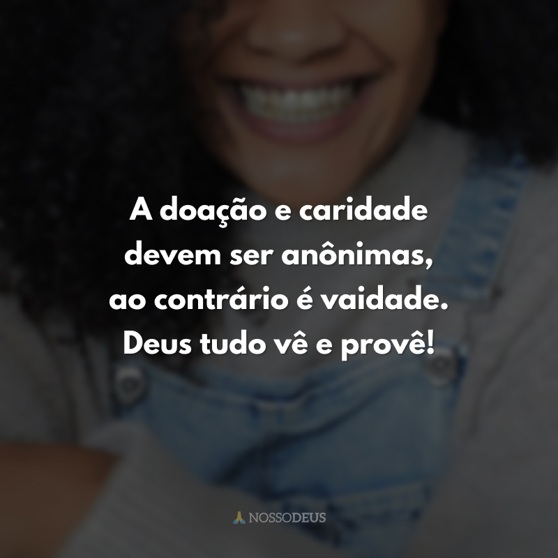 A doação e caridade devem ser anônimas, ao contrário é vaidade. Deus tudo vê e provê!