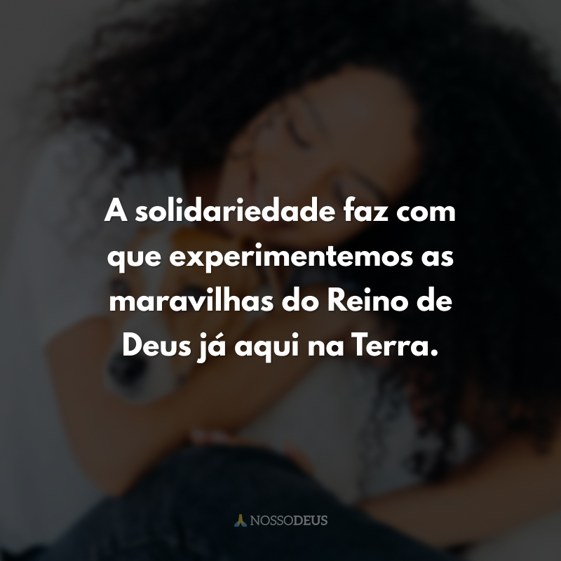 A solidariedade faz com que experimentemos as maravilhas do Reino de Deus já aqui na Terra.
