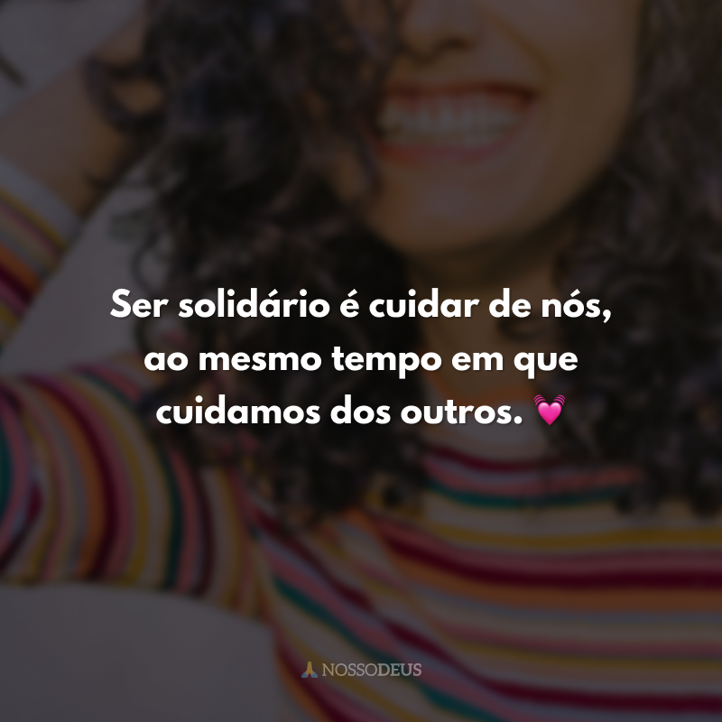 Ser solidário é cuidar de nós, ao mesmo tempo em que cuidamos dos outros. 💓
