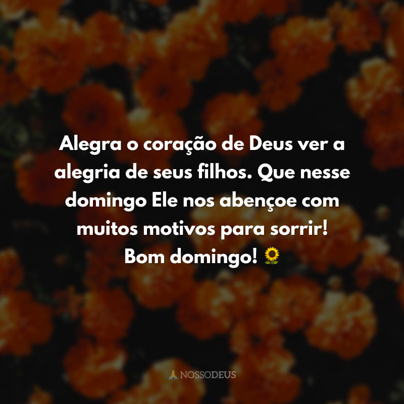 Alegra o coração de Deus ver a alegria de seus filhos. Que nesse domingo Ele nos abençoe com muitos motivos para sorrir! Bom domingo! 🌻